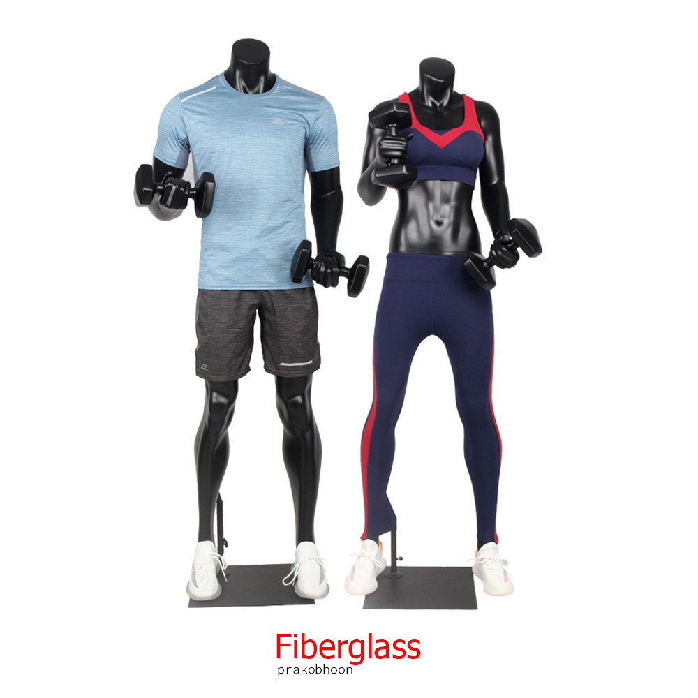หุ่นโชว์เสื้อผ้ายกน้ำหนักไม่มีหัวไฟเบอร์กลาส (พรีออเดอร์)